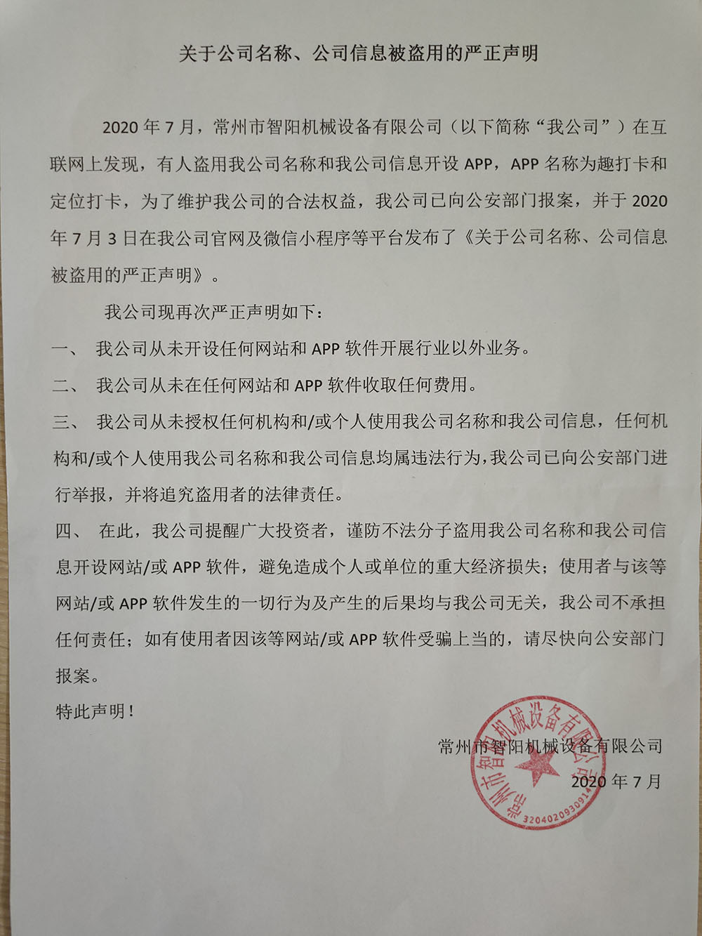 關(guān)于公司名稱、公司信息被盜用的嚴(yán)正聲明